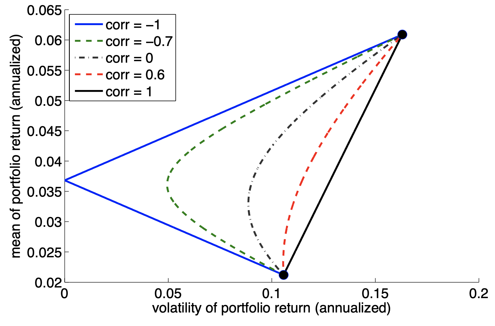 Thus, all investors hold a mix of two risky bundles (tangency and minimum variance) instead of tangency and cash.